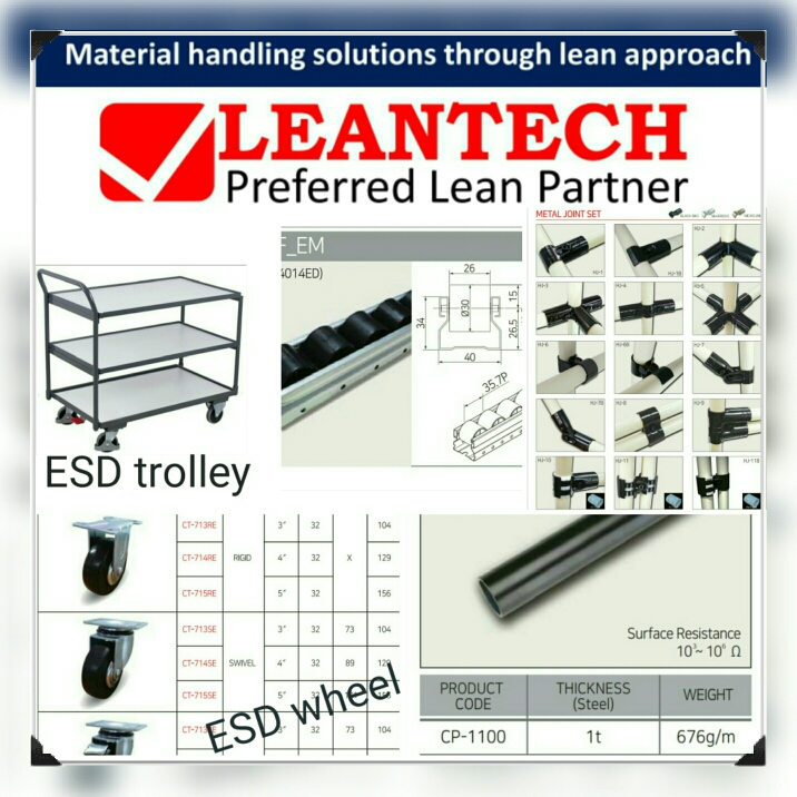 ESD products in Bengaluru. At LEANTECH we make many products in line with ESD and Anti static requirement. ESD safe products are mainly used in Electronics and Electrical Manufacturing Industries. wide variety of products available like Trolley, Work table, ESD mat, ESD storage rack, ESD chutes etc